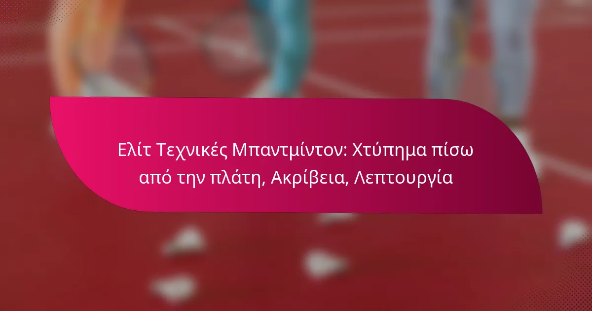 Η κυριαρχία στην ακρίβεια και τον έλεγχο στο χτύπημα πίσω από την πλάτη απαιτεί προσοχή σε αρκετές βασικές τεχνικές. Πρώτον, διατηρήστε μια ισχυρή λαβή στη ρακέτα, επιτρέποντας καλύτερο έλεγχο κατά την κίνηση. Δεύτερον, εστιάστε στο συγχρονισμό σας; το χτύπημα θα πρέπει να εκτελείται μόλις το φτερό φτάσει στο μέγιστο ύψος του.