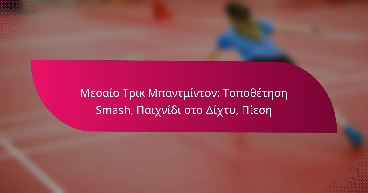 Η βελτίωση του παιχνιδιού σας στο δίχτυ στο μπάντμιντον περιλαμβάνει την εκμάθηση βασικών τεχνικών, την αποτελεσματική τοποθέτηση και την αποφυγή κοινών λαθών. Εστιάζοντας σε αυτούς τους τομείς, μπορείτε να ενισχύσετε την ικανότητά σας να ελέγχετε το παιχνίδι και να ασκείτε πίεση στον αντίπαλο.